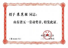 ■2022-05-24 我公司總工助理蘇范勝榮獲“山東省五一勞動(dòng)獎(jiǎng)?wù)隆睒s譽(yù)稱號(hào)