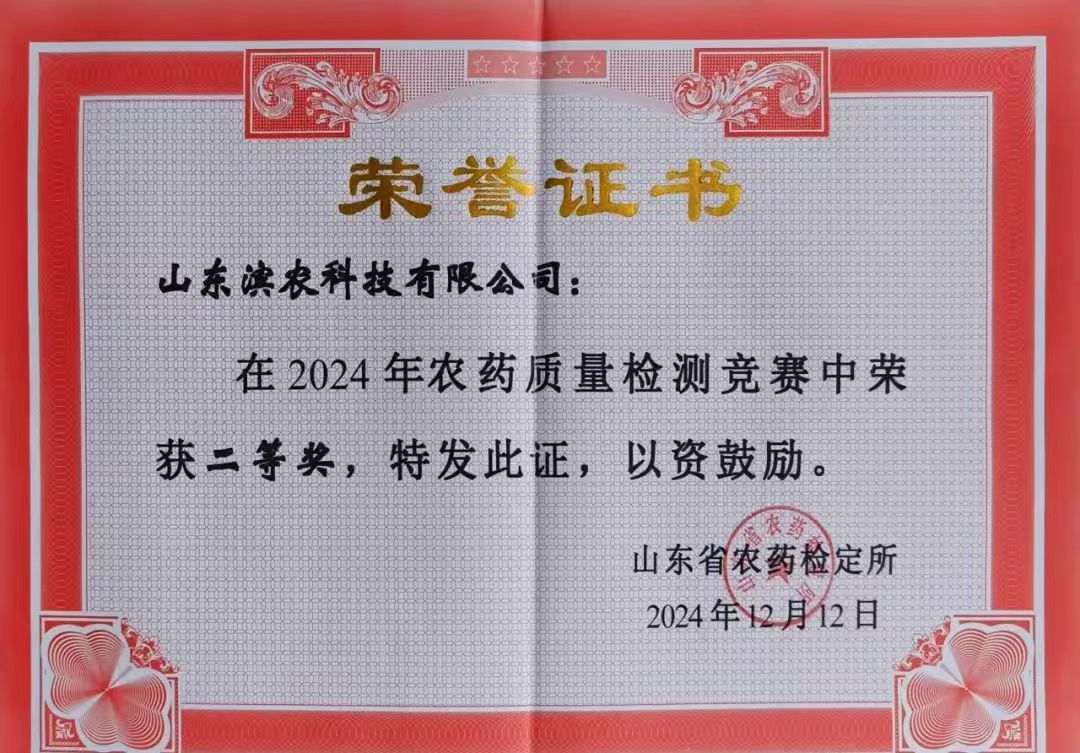 ■2025-01-15 濱農(nóng)科技獲全省農(nóng)藥質(zhì)量檢測(cè)競(jìng)賽二等獎(jiǎng)