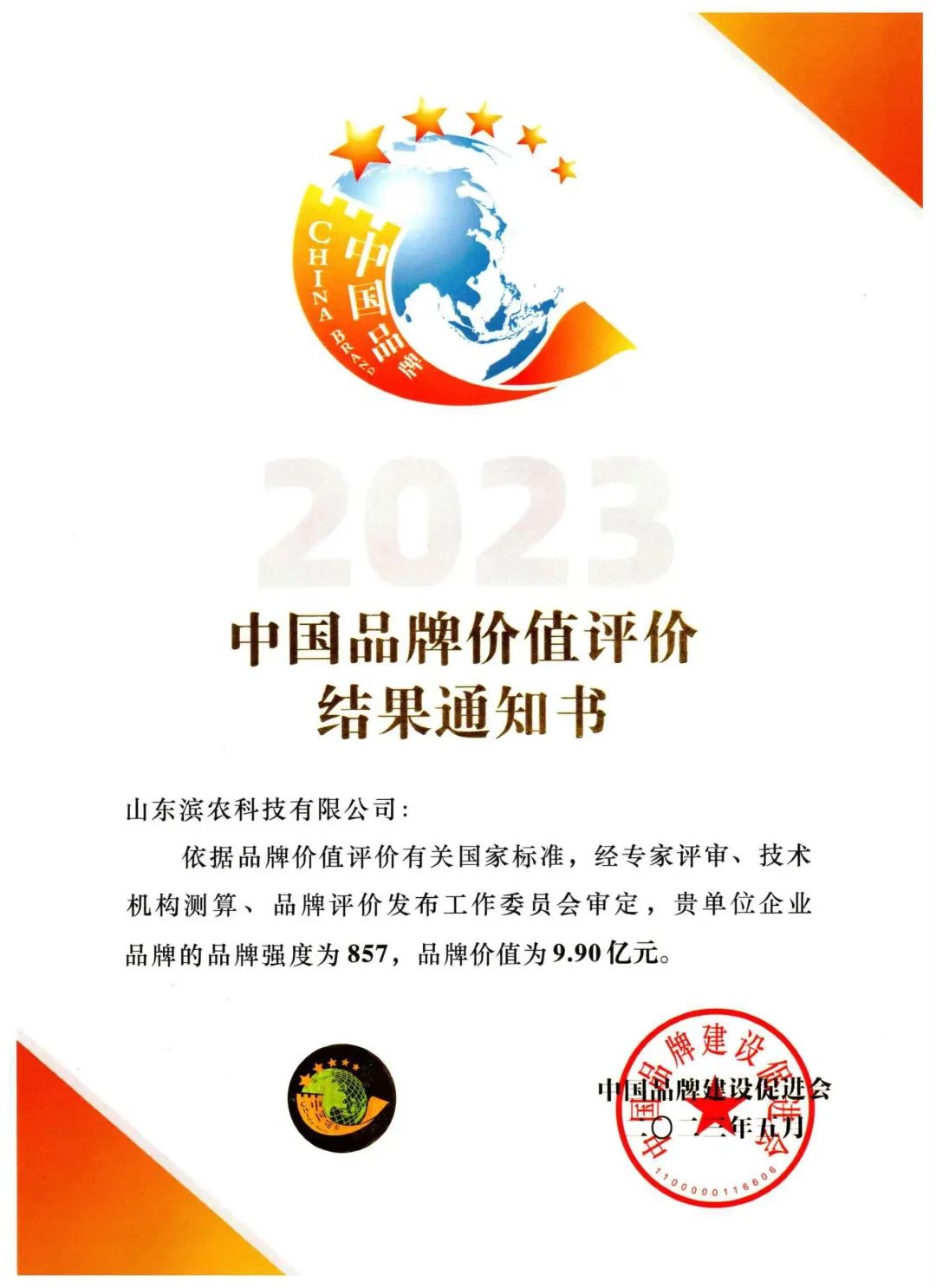 ■2023-07-10 2023中國(guó)品牌價(jià)值評(píng)價(jià)信息發(fā)布!濱農(nóng)科技品牌價(jià)值9.9億元