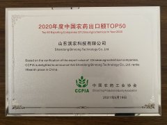 ■2021-07-13 濱農(nóng)科技榮獲“2020年中國農(nóng)藥出口TOP20”第十四名