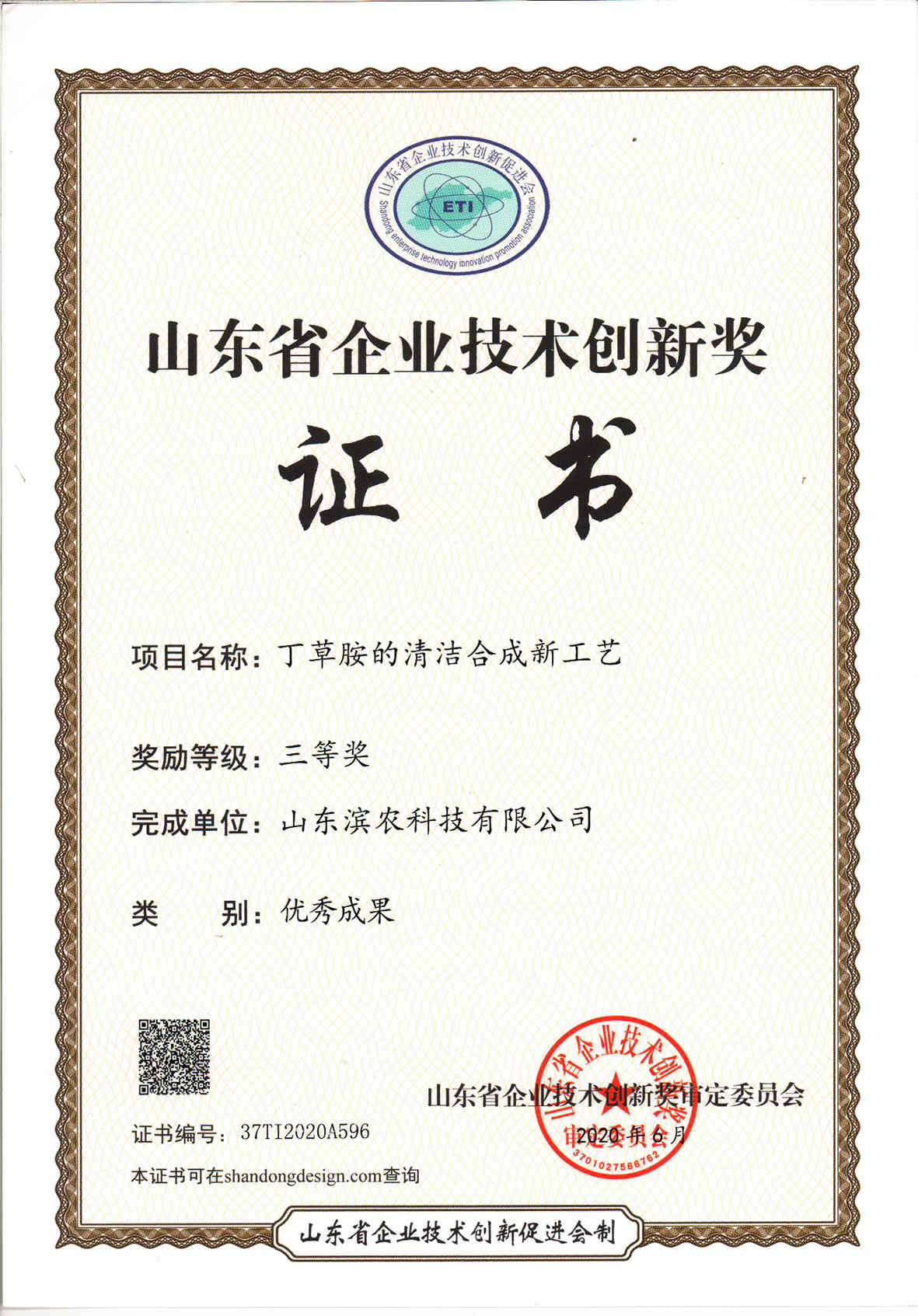 ■2020-08-05 我公司成果“丁草胺的清潔合成新工藝”榮獲山東省企業(yè)技術(shù)創(chuàng)新獎優(yōu)秀新產(chǎn)品