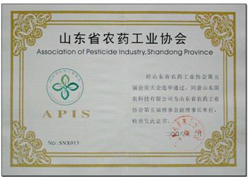 2008年2月,我公司經(jīng)山東省農(nóng)藥工業(yè)協(xié)會第五屆會員大會選舉通過,當(dāng)選為山東省農(nóng)業(yè)工業(yè)協(xié)會第五屆理事會副理事長單位。