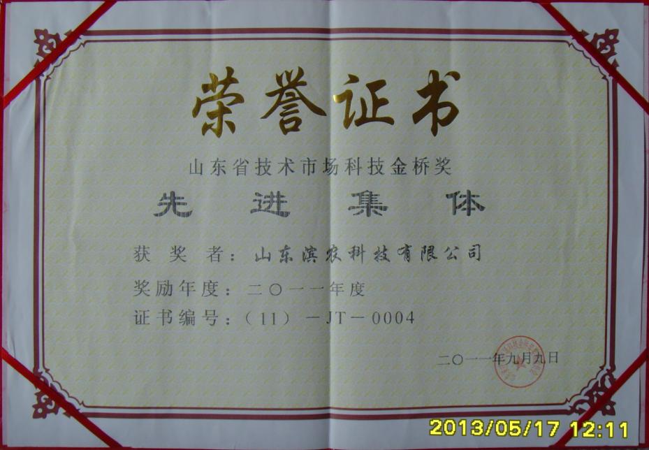■2011-08-29 我公司榮獲“山東省技術(shù)市場(chǎng)科技金橋獎(jiǎng)先進(jìn)集體”