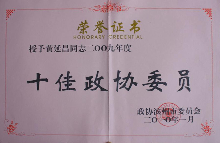 ■2010-01-21 我公司董事長(zhǎng)黃延昌榮獲2009年度“十佳政協(xié)委員”稱號(hào)