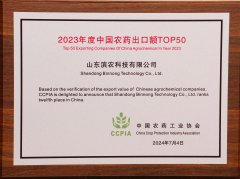 ■2024-07-16 濱農(nóng)科技榮膺2023年度“中國農(nóng)藥出口額Top 50”第12名