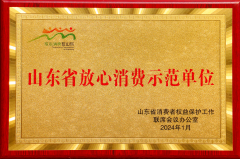 ■2024-04-12 山東省消費(fèi)者權(quán)益保護(hù)工作聯(lián)席會議辦公室授予我公司“山東省放心消費(fèi)示范單