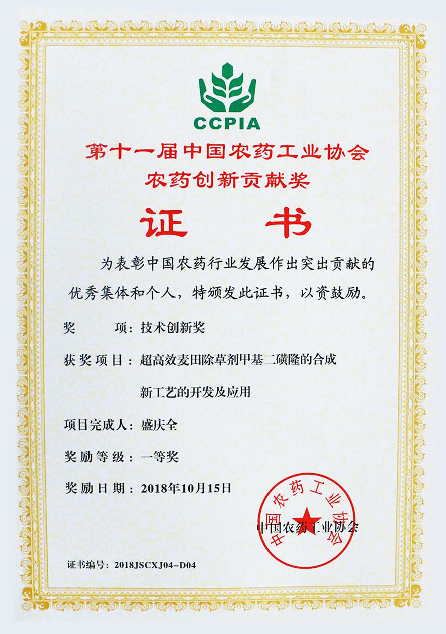 據(jù)悉,在被評(píng)定為綠色產(chǎn)品的11家石油和化工行業(yè)企業(yè)中,僅有2家農(nóng)藥化工企業(yè)獲此殊榮。我公司研究所所長(zhǎng)盛慶全參加了此次大會(huì),并代表公司上臺(tái)領(lǐng)取證書。