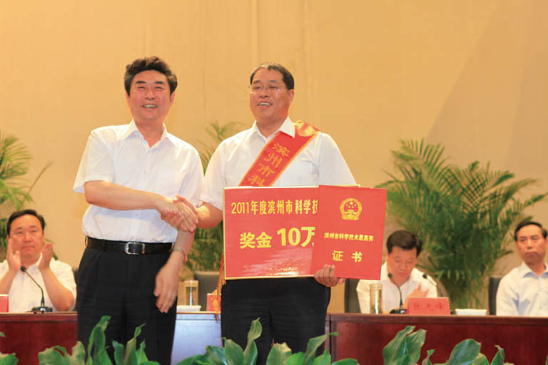我公司董事長(zhǎng)黃延昌榮獲2011年濱州市科學(xué)技術(shù)最高獎(jiǎng)發(fā)布時(shí)間:2014-06-16 10:332012年3月19日,濱州市人民政府濱政字【2012】22號(hào)文件《關(guān)于2011年度濱州市科學(xué)技術(shù)獎(jiǎng)勵(lì)的決定》公布了2011年獲得濱州市科學(xué)技術(shù)獎(jiǎng)勵(lì)的單位和個(gè)人。我公司董事長(zhǎng)黃延昌喜獲2011年度“濱州市科學(xué)技術(shù)最高獎(jiǎng)”。 6月1日下午,在市政大廈隆重舉行的全市科學(xué)技術(shù)獎(jiǎng)勵(lì)大會(huì)上,董事長(zhǎng)黃延昌獲頒 “2011年度濱州市科學(xué)技術(shù)最高獎(jiǎng)”,并獲獎(jiǎng)金10萬(wàn)元。 近幾年,我公司自主創(chuàng)新能力大幅提升,創(chuàng)新平臺(tái)建設(shè)步伐加快,為公司研發(fā)“高精尖”綠色農(nóng)藥提供了強(qiáng)力的技術(shù)支撐。特別是在農(nóng)藥合成及制劑的復(fù)配領(lǐng)域中均實(shí)現(xiàn)了重大創(chuàng)新與突破,為中國(guó)農(nóng)藥產(chǎn)業(yè)的發(fā)展壯大做出了重要貢獻(xiàn):系統(tǒng)研究了多種不對(duì)稱催化劑的合成方法,研發(fā)出多種手性化合物合成所用的不對(duì)稱催化劑,解決了手性化合物合成中的關(guān)鍵、共性問(wèn)題,開(kāi)發(fā)出5個(gè)農(nóng)藥原藥新產(chǎn)品,填補(bǔ)了國(guó)內(nèi)空白。首創(chuàng)了多個(gè)多元復(fù)配制劑配方,解決了國(guó)內(nèi)部分農(nóng)作物田間農(nóng)藥品種少、成本高的難題,增添了農(nóng)藥新品種,提高了在國(guó)內(nèi)農(nóng)藥行業(yè)的市場(chǎng)競(jìng)爭(zhēng)力。 ![]() |