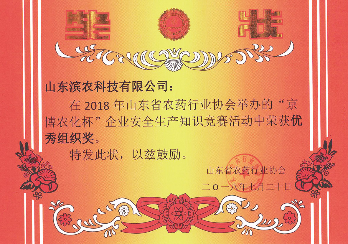 我公司榮獲“京博農(nóng)化杯”企業(yè) 安全生產(chǎn)知識競賽“優(yōu)秀組織獎”發(fā)布時間:2018-09-04 16:27安全生產(chǎn)月期間,山東省農(nóng)藥行業(yè)協(xié)會開展了“京博農(nóng)化杯”企業(yè)安全生產(chǎn)知識競賽,我公司積極組織各生產(chǎn)車間、技術(shù)部門和后勤科室共1605人參加了比賽。此次競賽共有26家單位2811人參加,經(jīng)競賽組委會嚴(yán)格閱卷、評審和抽獎,共授予6家“優(yōu)秀組織獎”單位,我公司榮膺榜首。大賽還設(shè)一等獎3名、二等獎6名、三等獎9名、鼓勵獎50名。我公司制劑二車間員工張文華榮獲一等獎,合成八車間員工林國華榮獲三等獎,合成四車間員工王樹軍等9名員工榮獲鼓勵獎。 此次競賽深入宣傳普及了安全知識,提高了職工遵章守紀(jì)的自覺性,強(qiáng)化了基層員工的安全意識,為公司安全生產(chǎn)奠定了基礎(chǔ)。