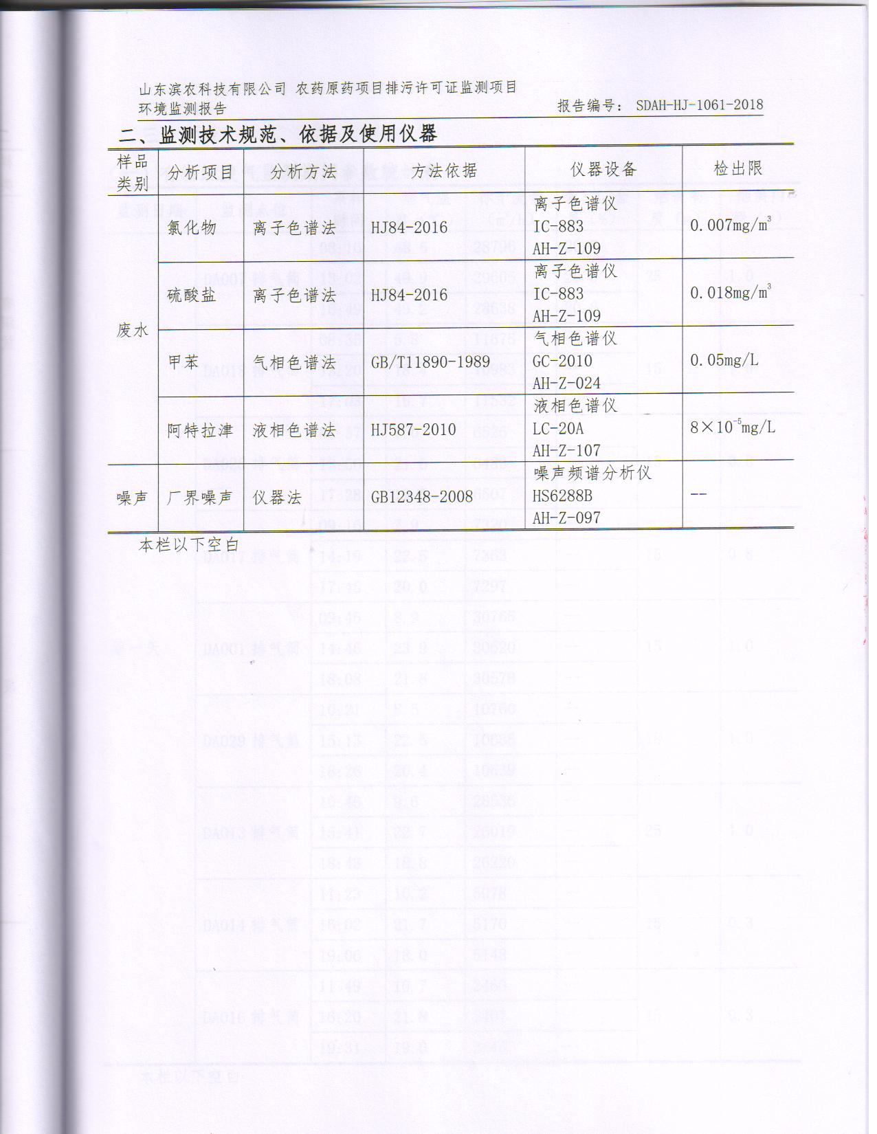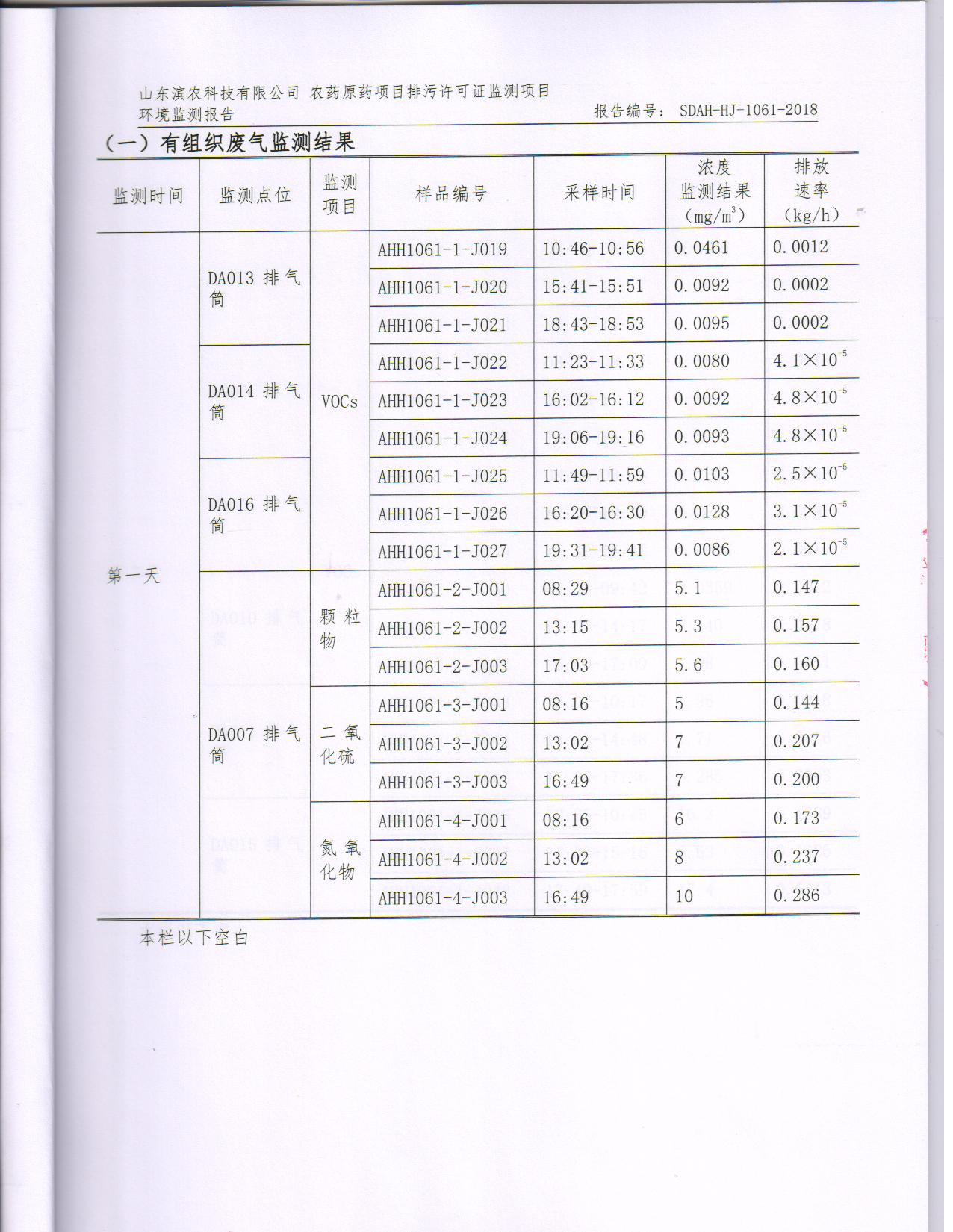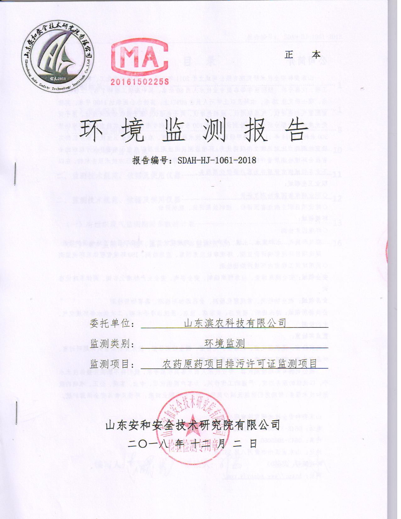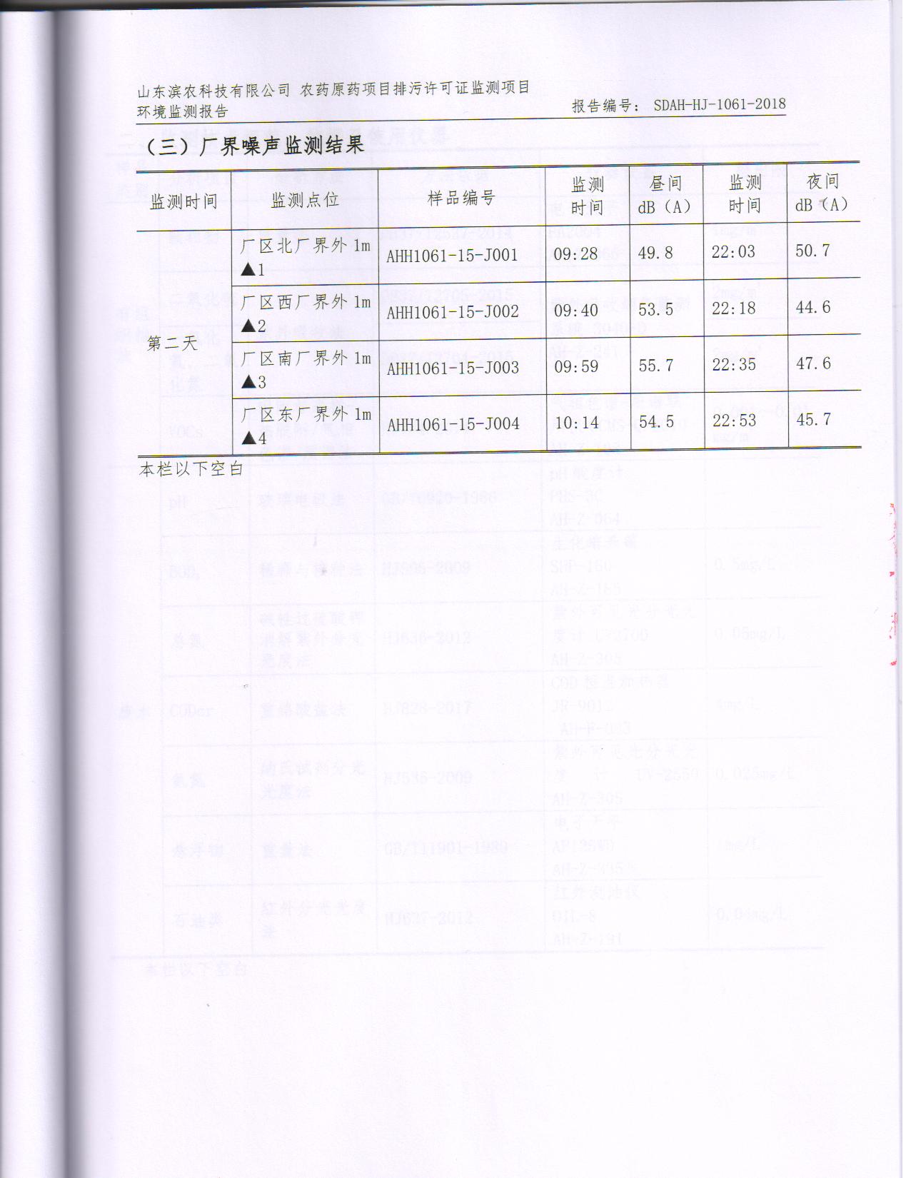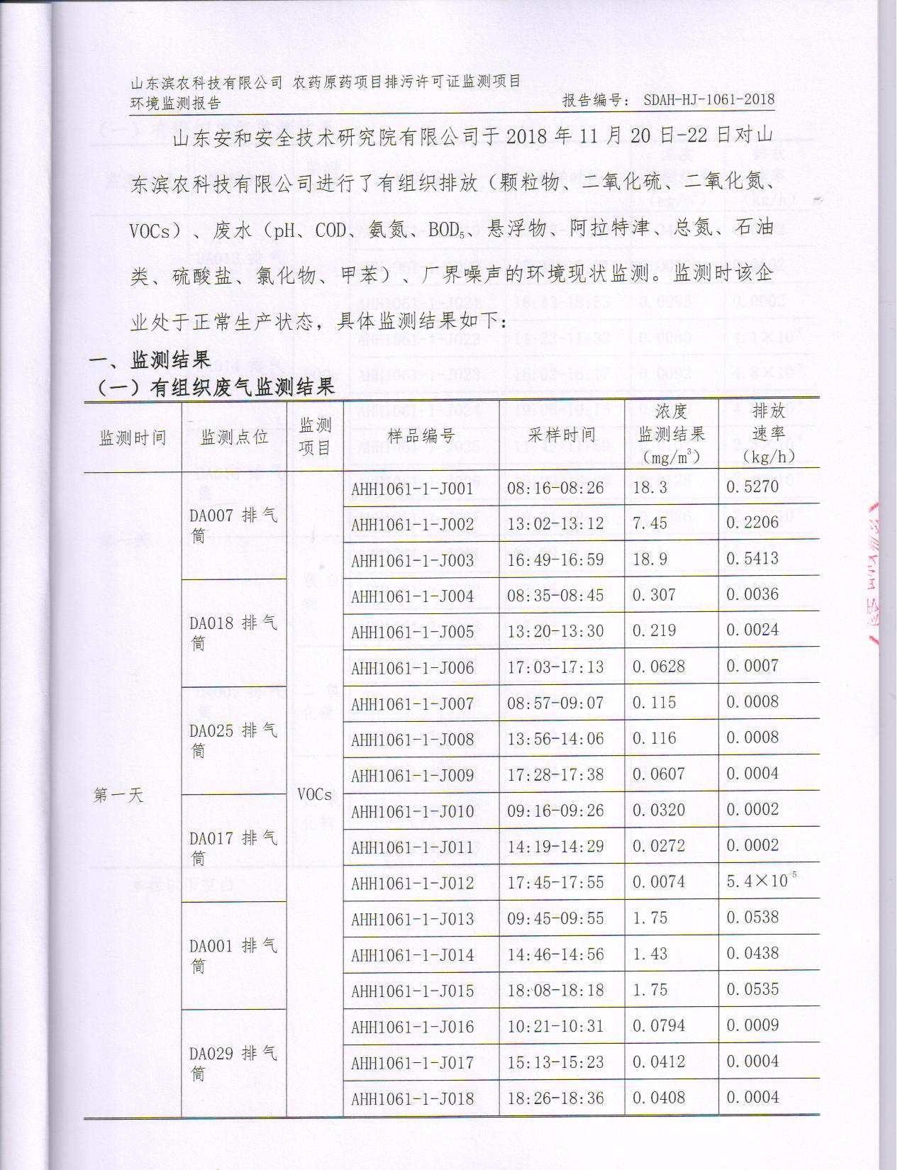 山東濱農(nóng)科技有限公司2018第四季度環(huán)境監(jiān)測(cè)報(bào)告