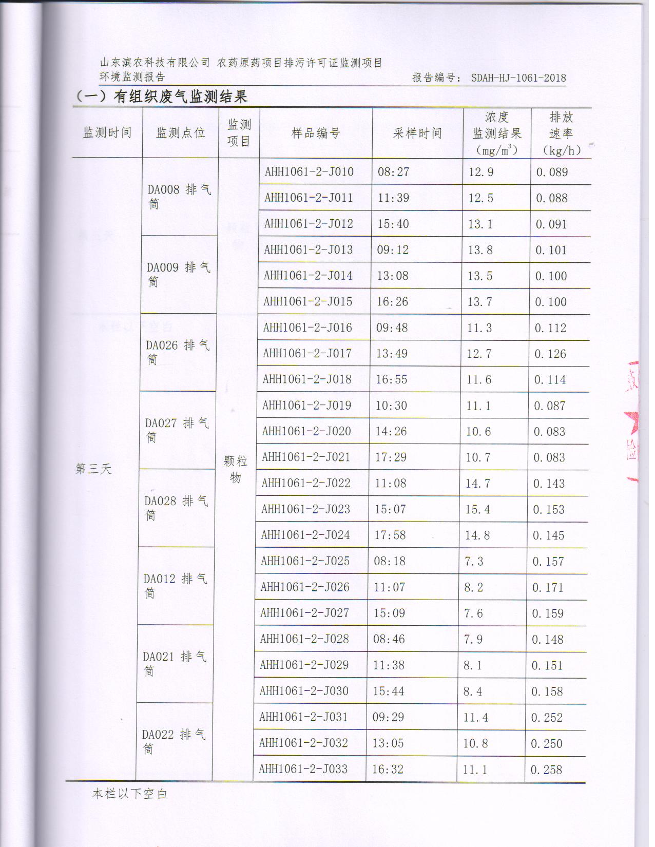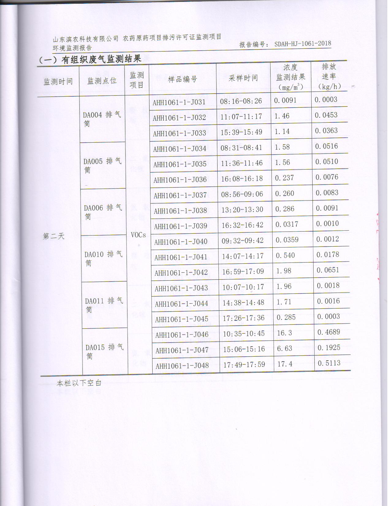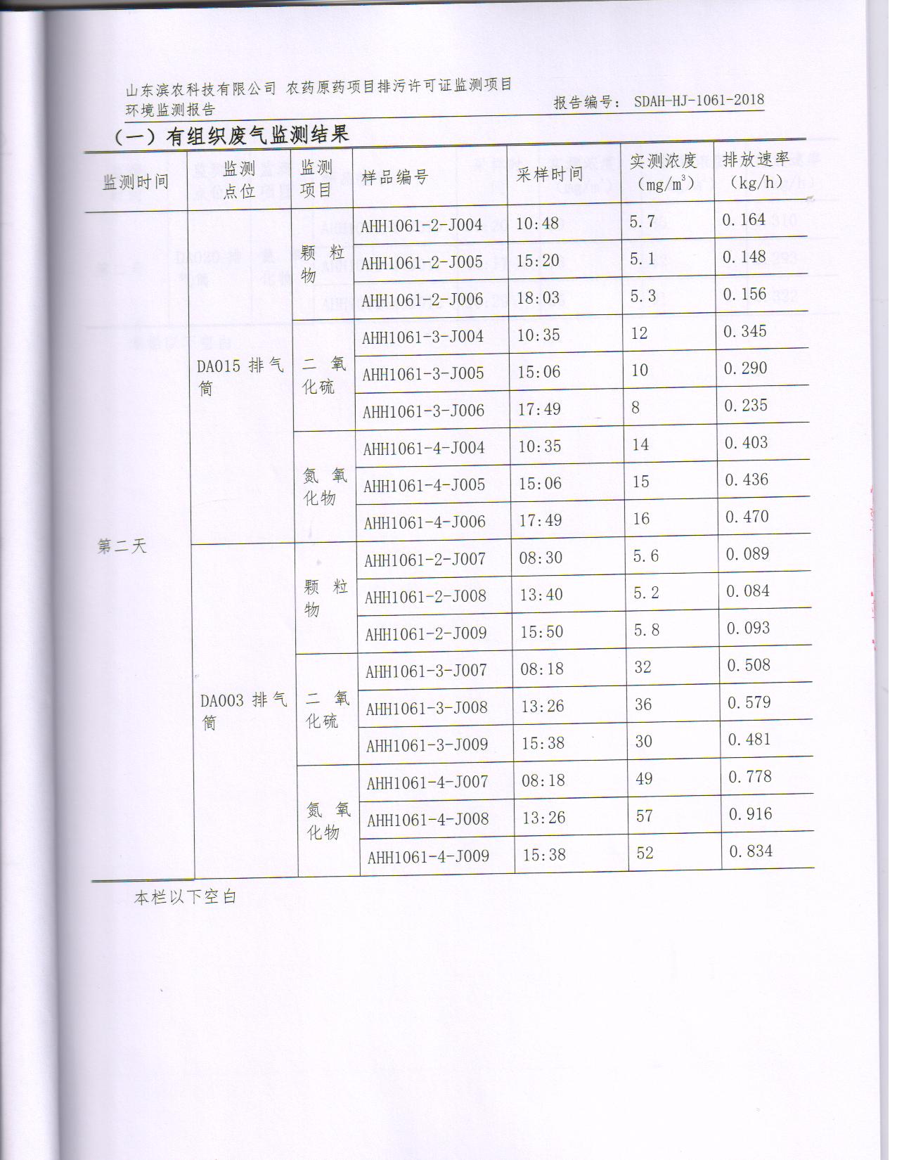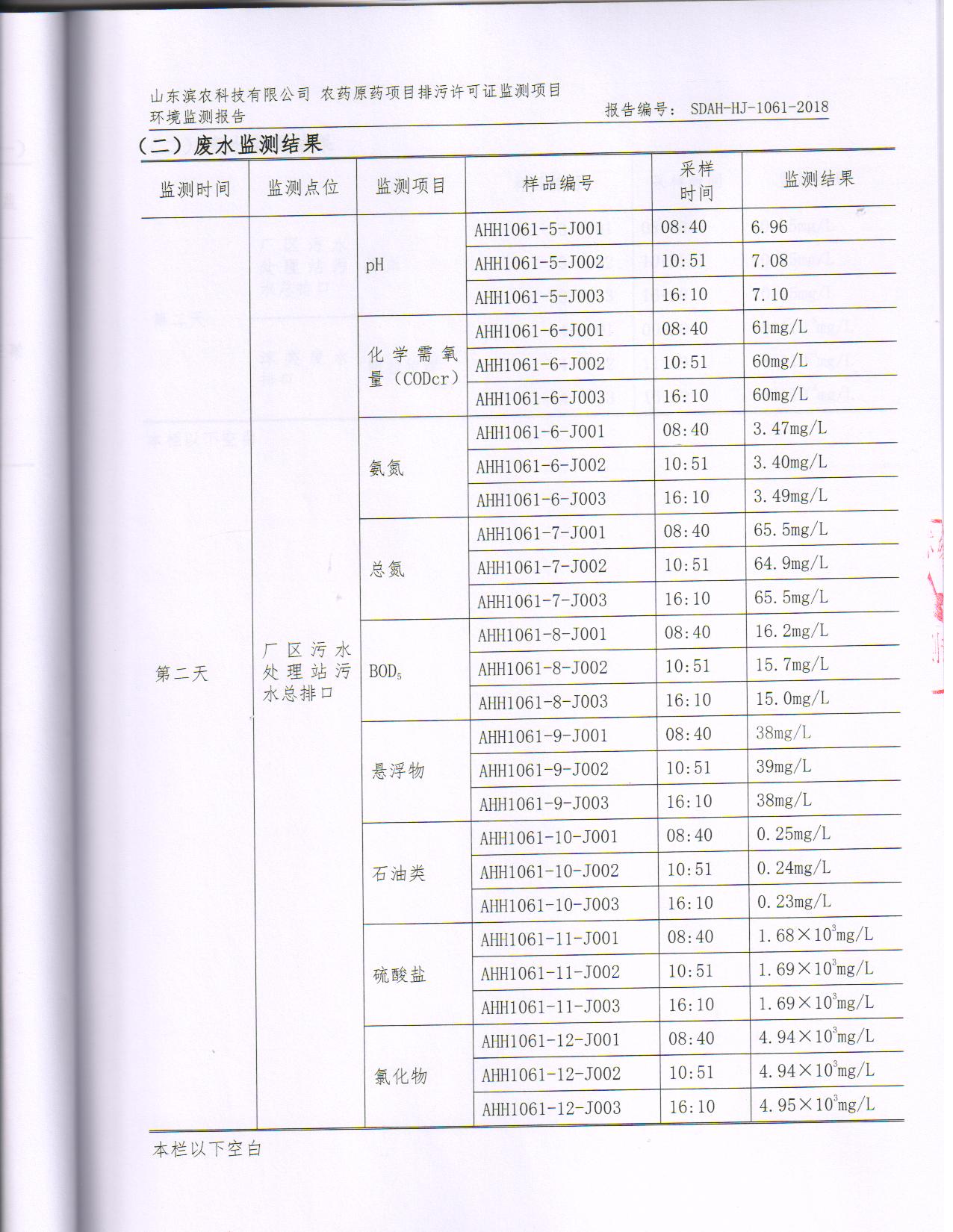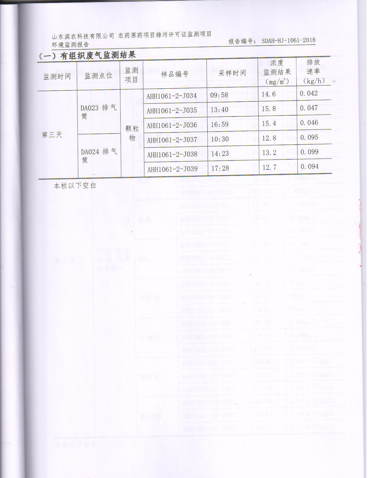 山東濱農(nóng)科技有限公司2018第四季度環(huán)境監(jiān)測(cè)報(bào)告