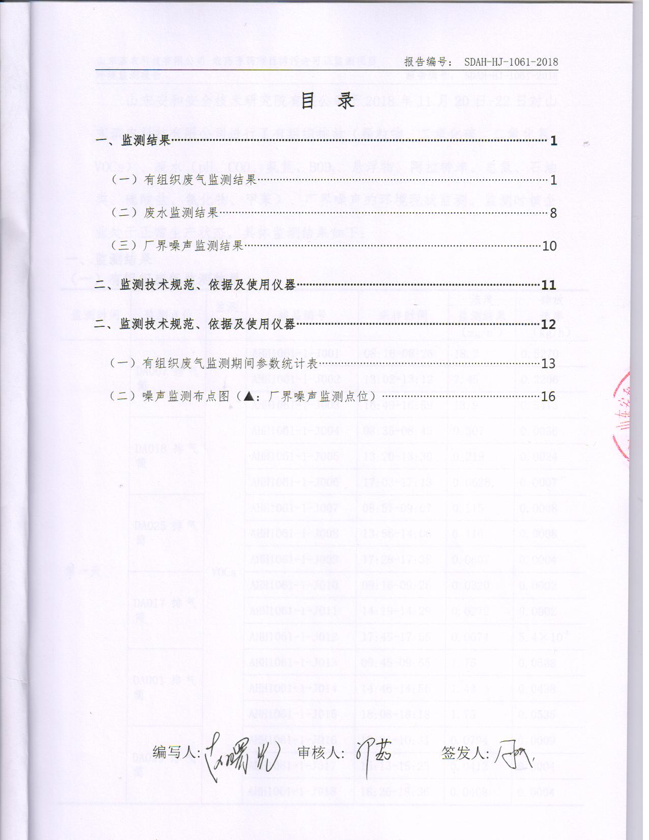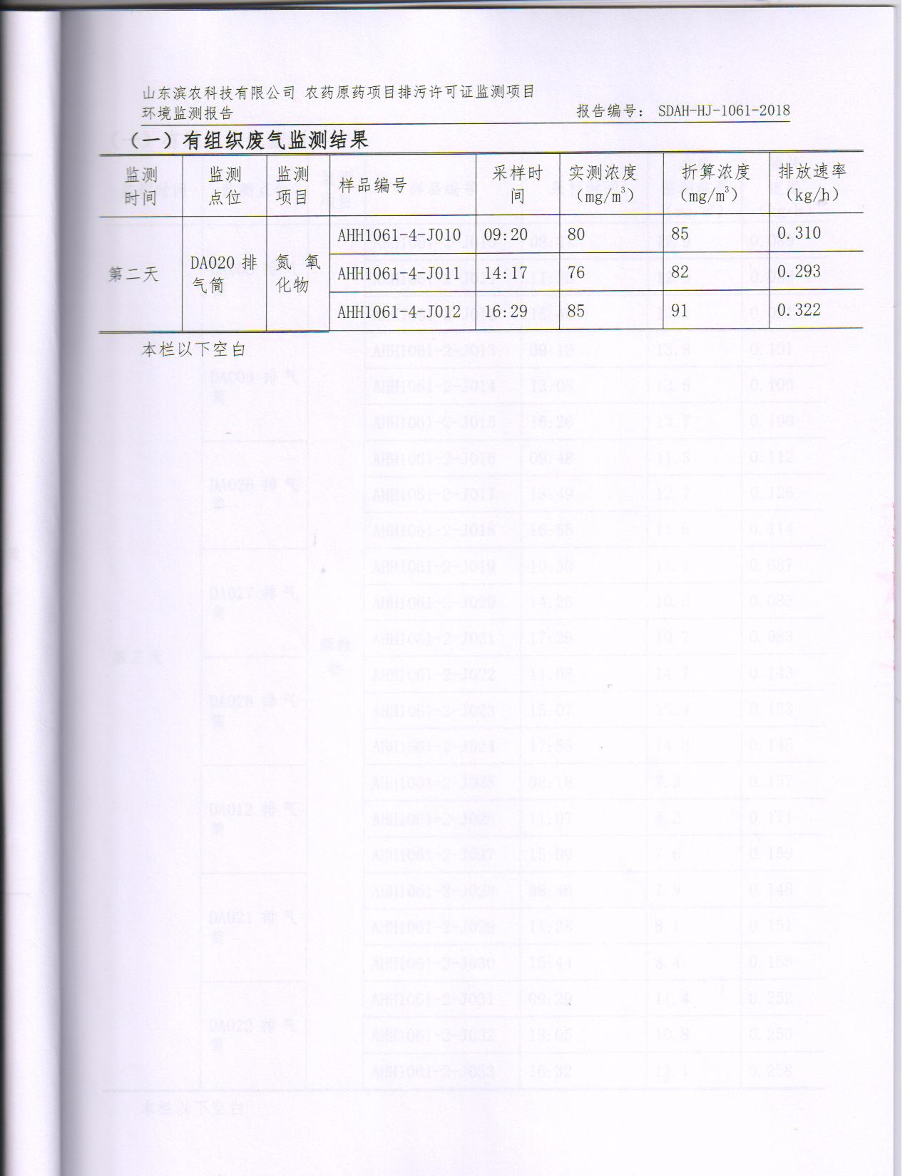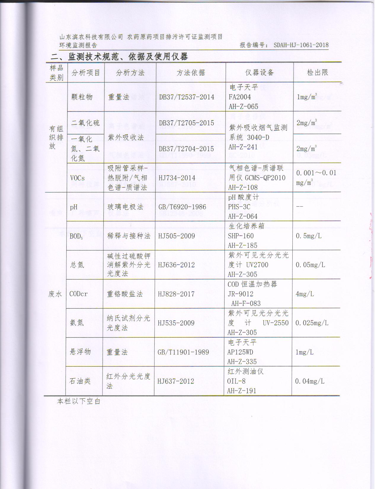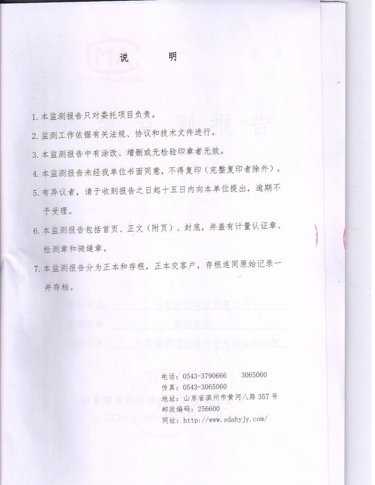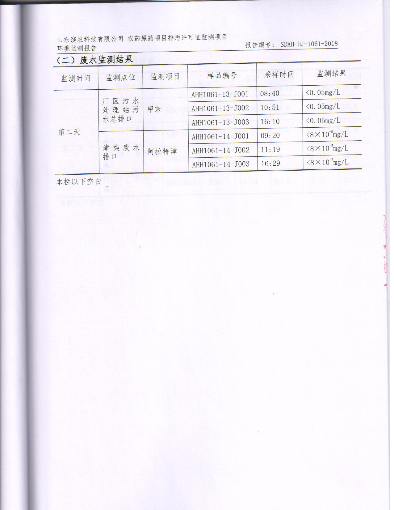 山東濱農(nóng)科技有限公司2018第四季度環(huán)境監(jiān)測(cè)報(bào)告