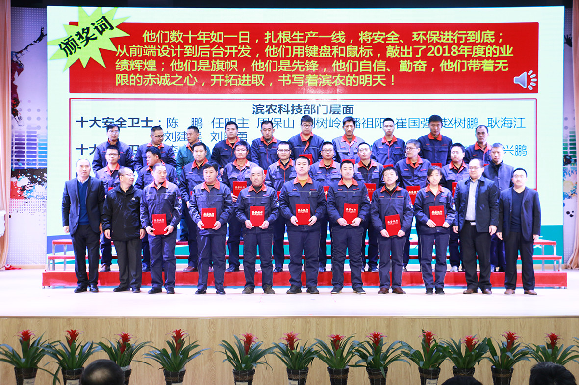 濱農(nóng)科技·國昌集團(tuán)2018-2019總結(jié)表彰暨動(dòng)員部署大會(huì)隆重召開發(fā)布時(shí)間:2019-03-06 15:36本報(bào)訊 2月1日,濱農(nóng)科技·國昌集團(tuán)2018-2019總結(jié)表彰暨動(dòng)員部署大會(huì)在國昌實(shí)驗(yàn)學(xué)校二樓報(bào)告廳隆重舉行。國昌集團(tuán)、濱農(nóng)科技全體高中層管理人員及部分優(yōu)秀員工代表、先進(jìn)個(gè)人共400余人參加了本次大會(huì)。 大會(huì)分為四項(xiàng)議程,首先由濱農(nóng)科技總經(jīng)理張茂貴、國昌集團(tuán)總經(jīng)理夏毅飛分別宣讀了國昌集團(tuán)、濱農(nóng)科技2018年度突出貢獻(xiàn)獎(jiǎng)、優(yōu)秀管理者、銷售冠軍、銷售標(biāo)兵的表彰決定;接著,集團(tuán)公司全體高層為在2018年度做出突出貢獻(xiàn)的先進(jìn)個(gè)人及團(tuán)隊(duì)分別頒發(fā)了榮譽(yù)證書并合影留念,大會(huì)通過宣讀頒獎(jiǎng)詞的方式,傳達(dá)了對(duì)先進(jìn)工作者的肯定,也鼓舞了大家2019再創(chuàng)佳績(jī)的信心;隨后,國昌集團(tuán)、濱農(nóng)科技優(yōu)秀管理者代表甕丙峰、李東,銷售明星代表于瑩、陳學(xué)付,優(yōu)秀員工代表呂國強(qiáng)、馬曉亮先后作了典型發(fā)言。 黃總對(duì)獲獎(jiǎng)?wù)弑硎咀YR并做了動(dòng)員部署重要講話。2018年兩板塊的經(jīng)營業(yè)績(jī)和存在的生產(chǎn)經(jīng)營問題做了全面總結(jié),并分析了兩板塊2019年度的行業(yè)格局和市場(chǎng)環(huán)境,對(duì)2019年度兩板塊的經(jīng)營目標(biāo)和工作重點(diǎn)做了重要部署。 最后,黃總勉勵(lì)大家:時(shí)間新故相推,一往無前,奮斗接續(xù)發(fā)力,永不止步。工作既是責(zé)任,責(zé)任就是擔(dān)當(dāng)。幸福是奮斗出來的,奮斗本身就是幸福,讓我們以奔跑者的姿態(tài),奮進(jìn)的腳步,實(shí)干的作風(fēng),共同書寫并綻放2019年的華彩!