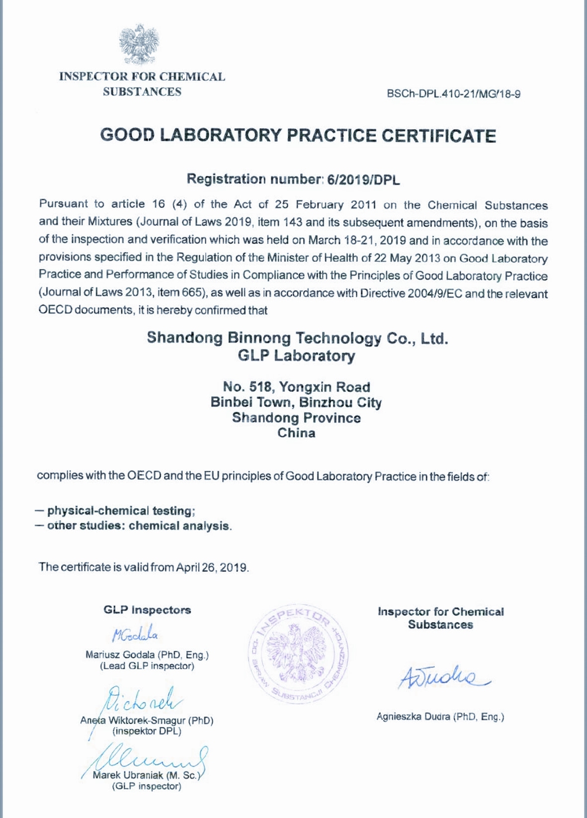 我公司GLP實(shí)驗(yàn)室通過認(rèn)定,成為山東省首家OECD GLP 實(shí)驗(yàn)室發(fā)布時(shí)間:2019-06-04 10:09本報(bào)訊 4月26日,我公司GLP實(shí)驗(yàn)室正式獲得由波蘭衛(wèi)生部化學(xué)物質(zhì)管理局頒發(fā)的GLP證書(Registration number:6/2019/DPL),成為山東省首家、國內(nèi)第23家OECD GLP 實(shí)驗(yàn)室,同時(shí)也是國內(nèi)第12家專門提供農(nóng)藥相關(guān)服務(wù)的GLP實(shí)驗(yàn)室。 GLP證書的獲得,意味著在指定研究領(lǐng)域可以出具被OECD 36個(gè)成員國和7個(gè)數(shù)據(jù)互認(rèn)國(MAD)接收的報(bào)告,并在很大程度上獲得其他國家和地區(qū)的認(rèn)可,實(shí)現(xiàn)“全球通用”,標(biāo)志著公司分析檢測(cè)水平獲得了全球的認(rèn)可,為公司致力推進(jìn)的全球植保事業(yè)將奠定堅(jiān)實(shí)的基礎(chǔ),對(duì)中國農(nóng)藥行業(yè)發(fā)展起到了積極的推動(dòng)作用。