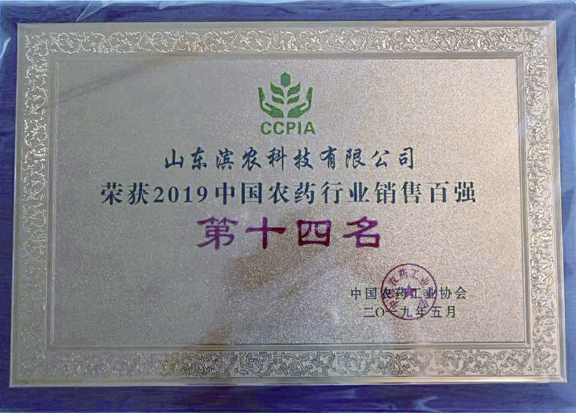 本報訊 5月15日, 2019中國農藥行業(yè)銷售百強企業(yè)榜單在“第六屆農藥行業(yè)經濟運行分析會暨農化行業(yè)排行榜發(fā)布會”上隆重揭曉,我公司以28.92億元的銷售額位居第14名。