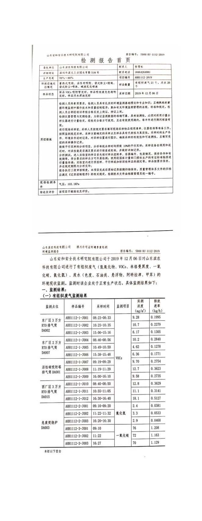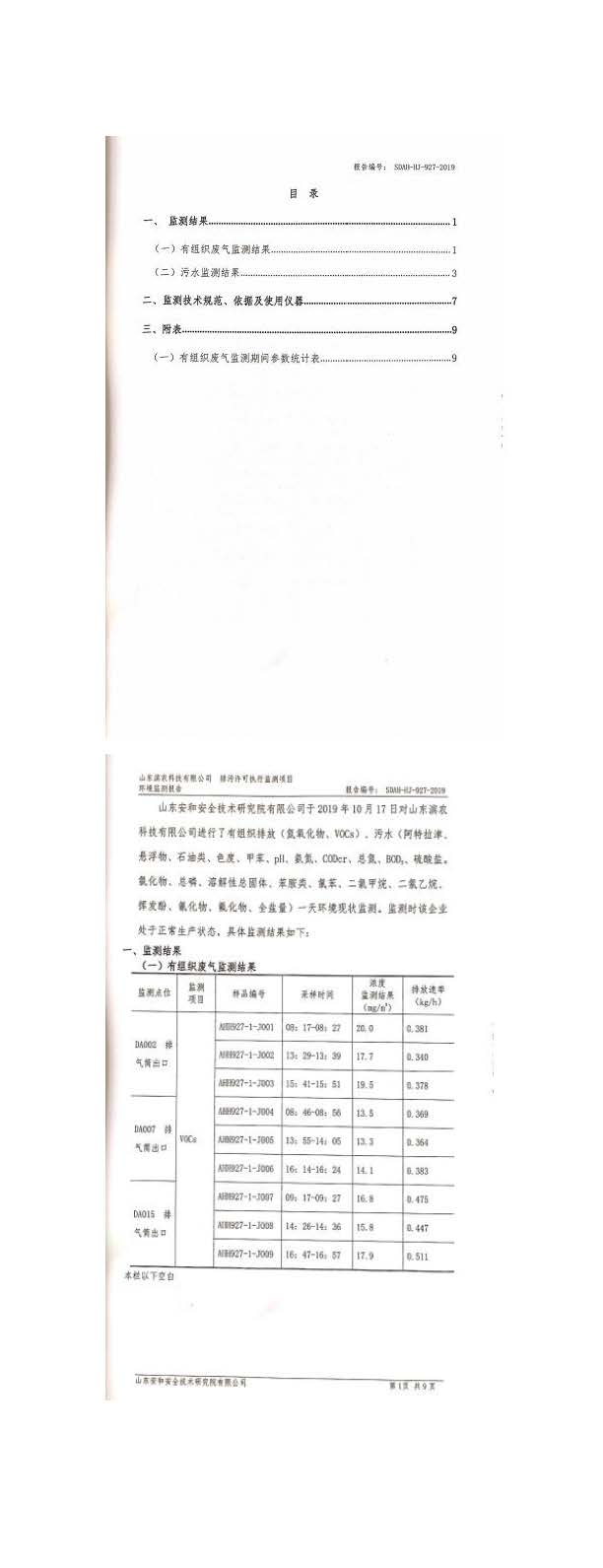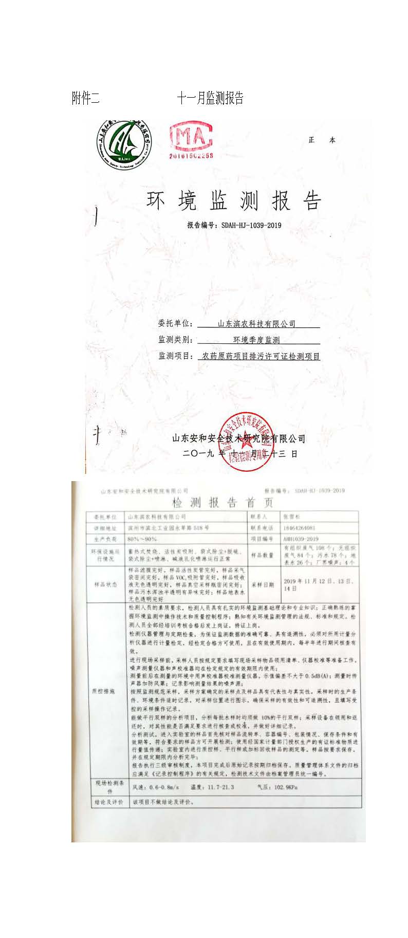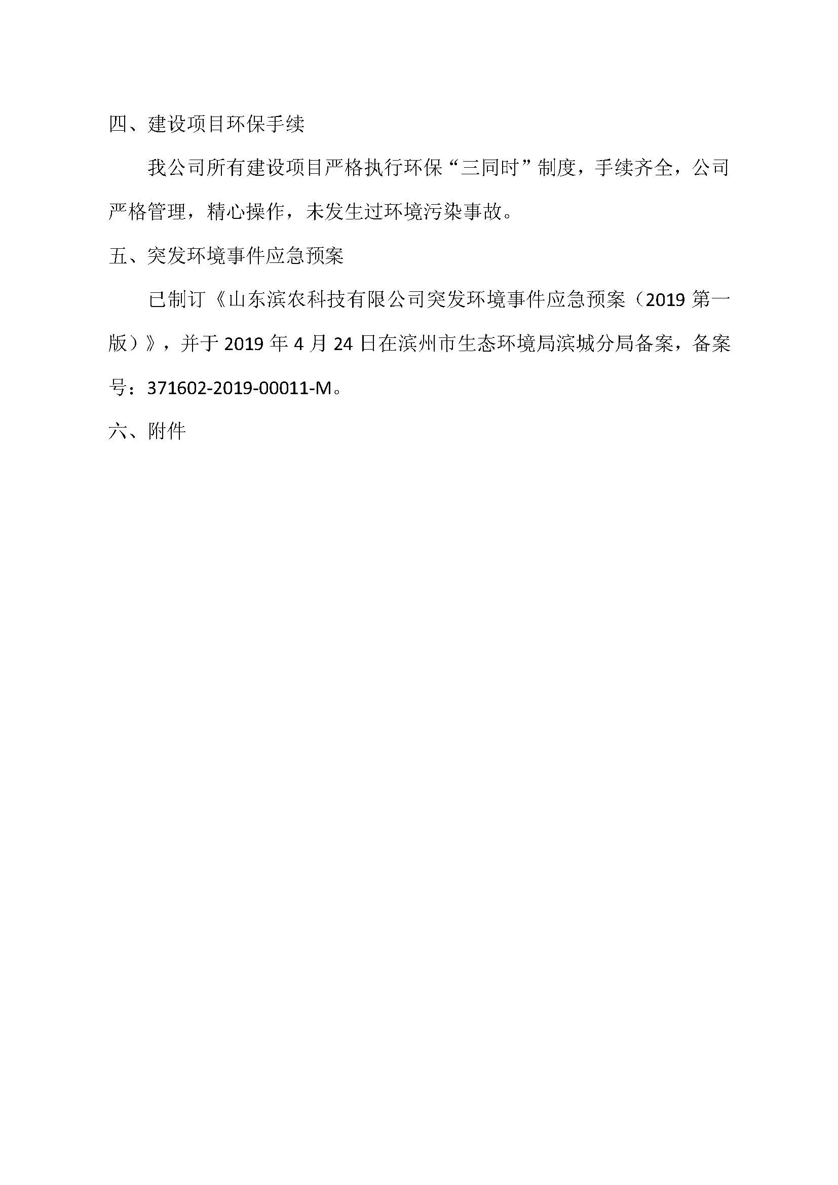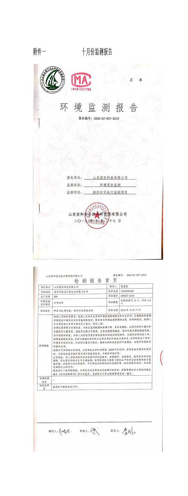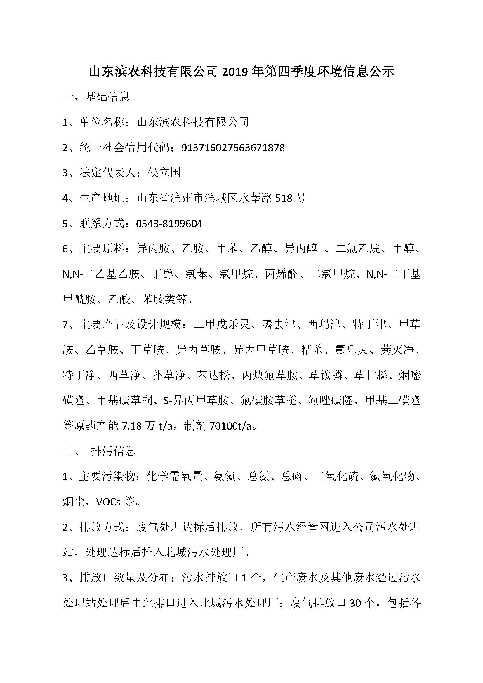 山東濱農(nóng)科技有限公司2019 年第四季度環(huán)境信息公示
