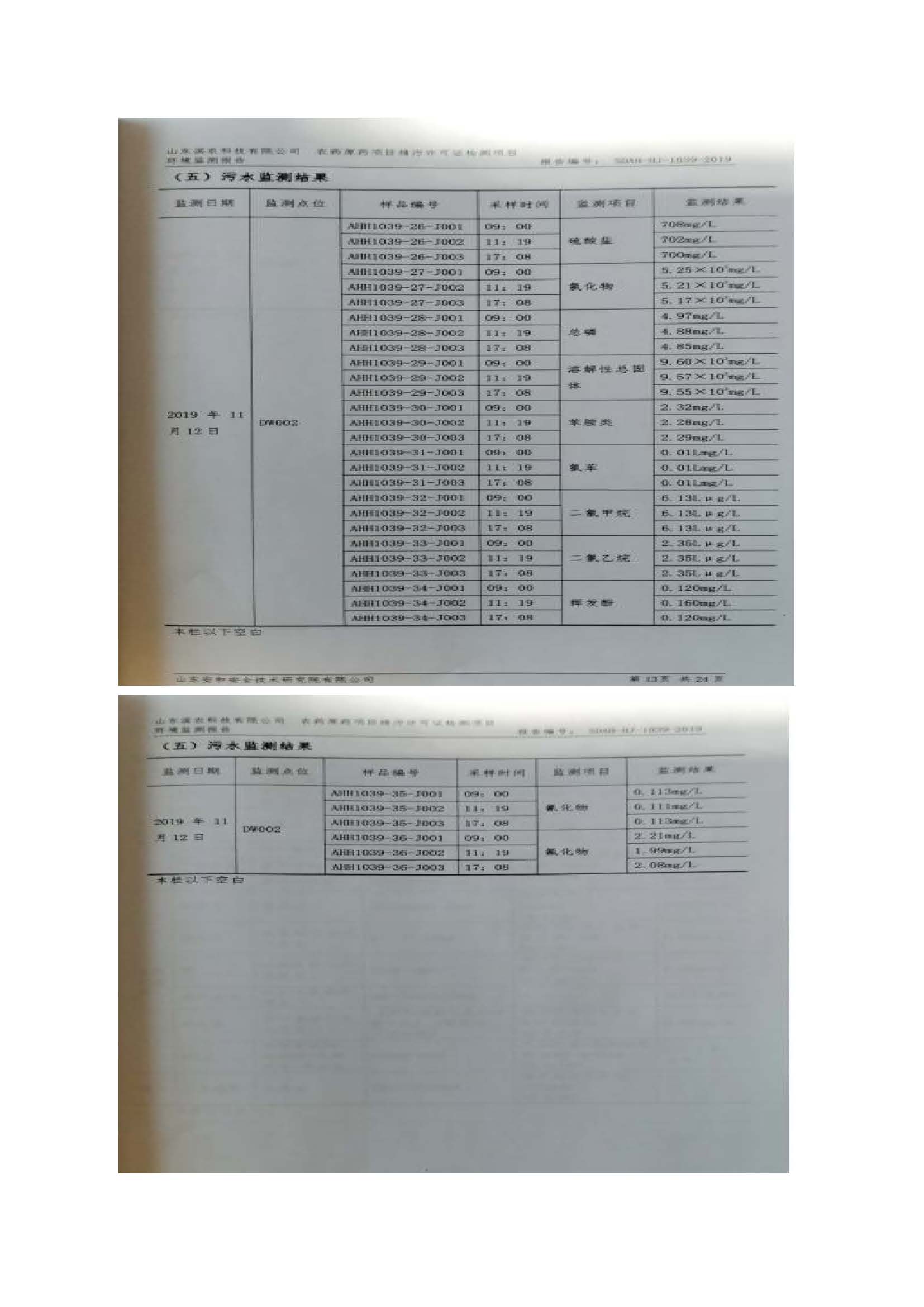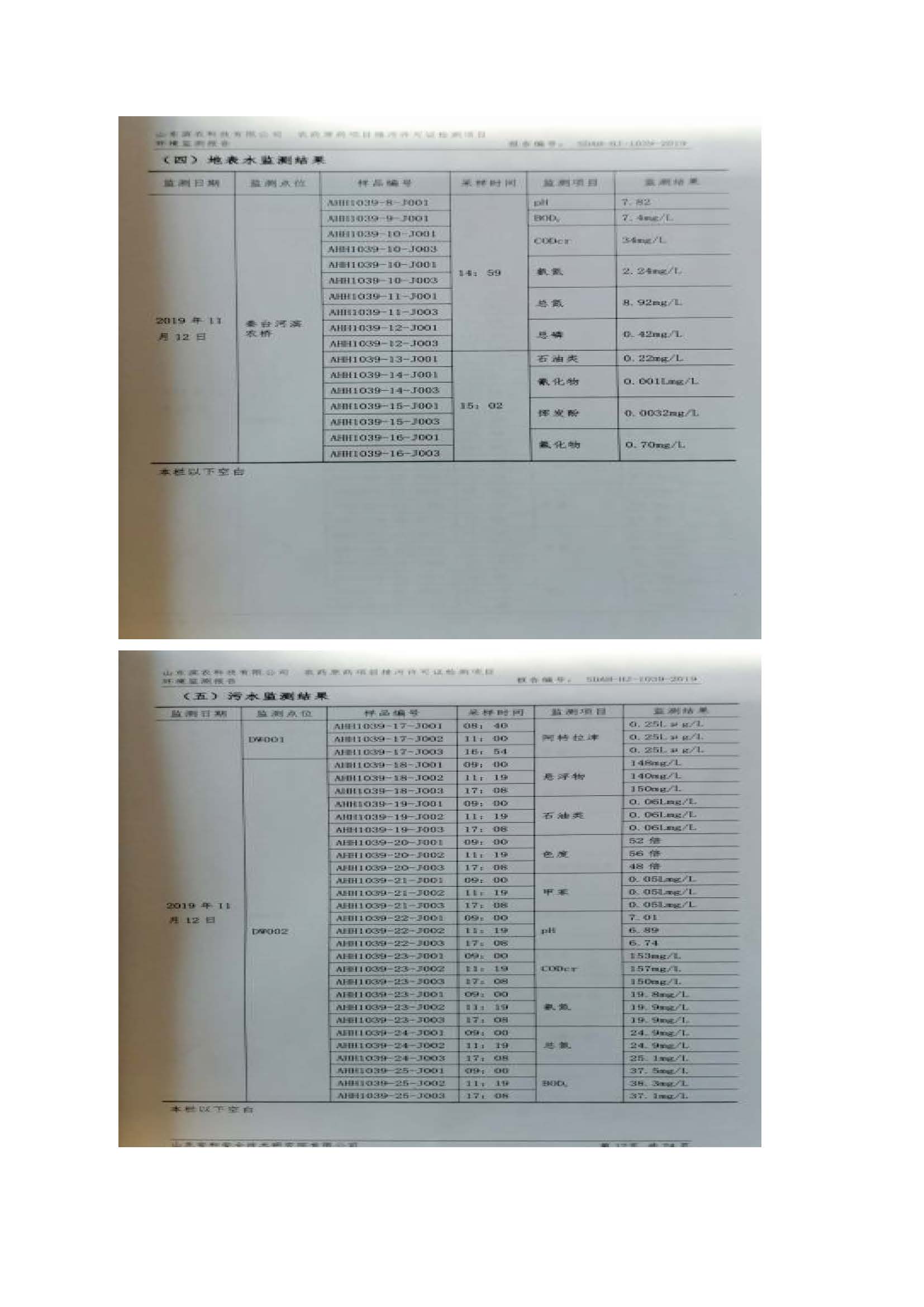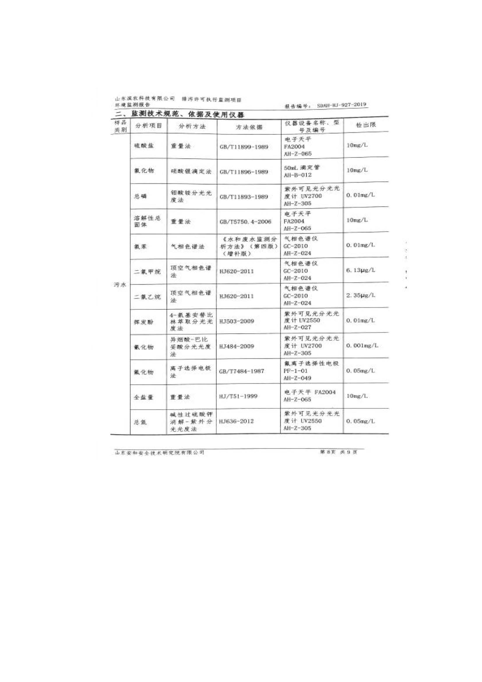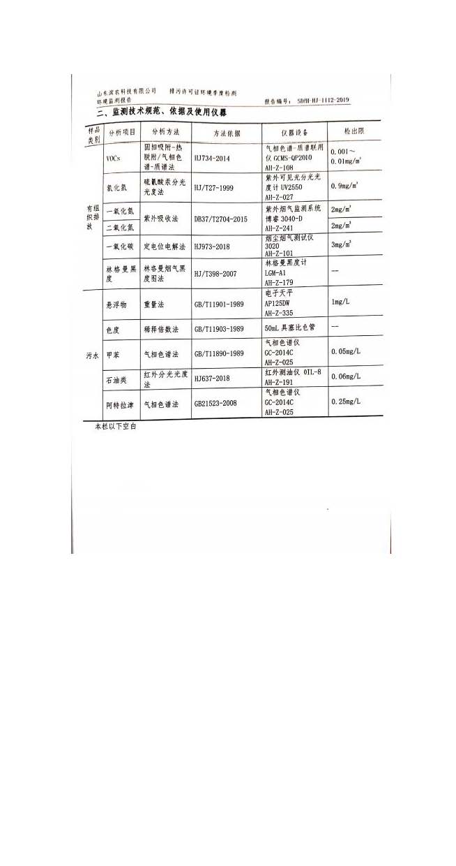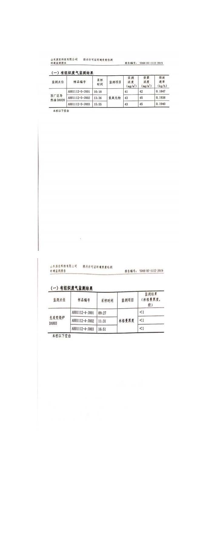山東濱農(nóng)科技有限公司2019 年第四季度環(huán)境信息公示