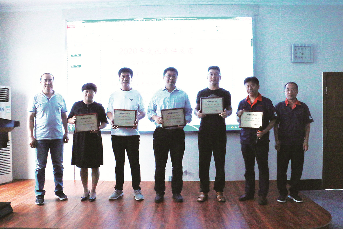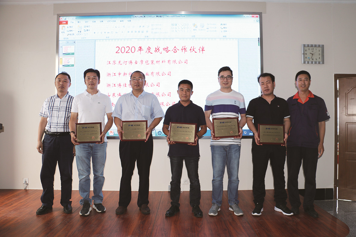 首先,張強結(jié)合我公司上一年度的整體生產(chǎn)經(jīng)營情況,就2020年度生產(chǎn)和市場上反饋的包裝物質(zhì)量問題與大家進行了交流并就解決方案進行了協(xié)商,隨后宣布了今年的優(yōu)秀供應(yīng)商名單并現(xiàn)場頒獎合影留念。2020年度戰(zhàn)略合作伙伴為:江蘇龍燈博士摩包裝材料有限公司、浙江申新包裝實業(yè)有限公司、浙江博佳包裝有限公司、山東博興大業(yè)包裝有限公司、濟南新先鋒至尊包裝有限公司;2020年度優(yōu)秀供應(yīng)商為:濱州魯達包裝有限公司、山東睿豐包裝有限公司、山東葉華包裝有限公司、格瑞夫包裝有限公司、臨淄振芳包裝有限公司。