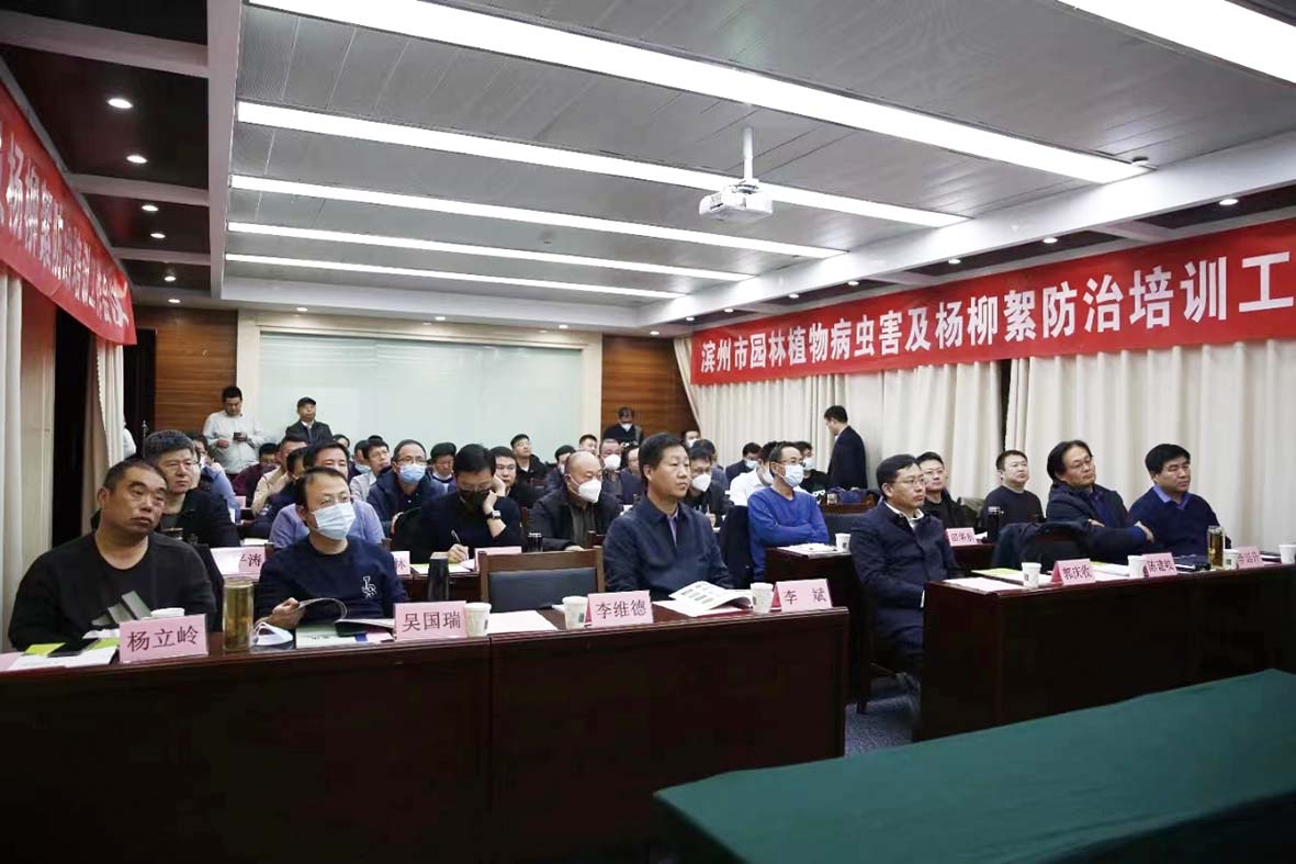 2月17日下午,濱州市園林植物病蟲害及楊柳絮防治培訓工作會議在無棣縣召開,濱州市城管局黨組成員、副局長郭慶收,無棣縣副縣長李斌出席會議,各園林科、公共事業(yè)服務(wù)中心、綠化公司等參會,我公司非農(nóng)事業(yè)部市場總監(jiān)韓正勇、護綠生態(tài)經(jīng)理黃新濤,業(yè)務(wù)經(jīng)理王剛、喬愛國參會。