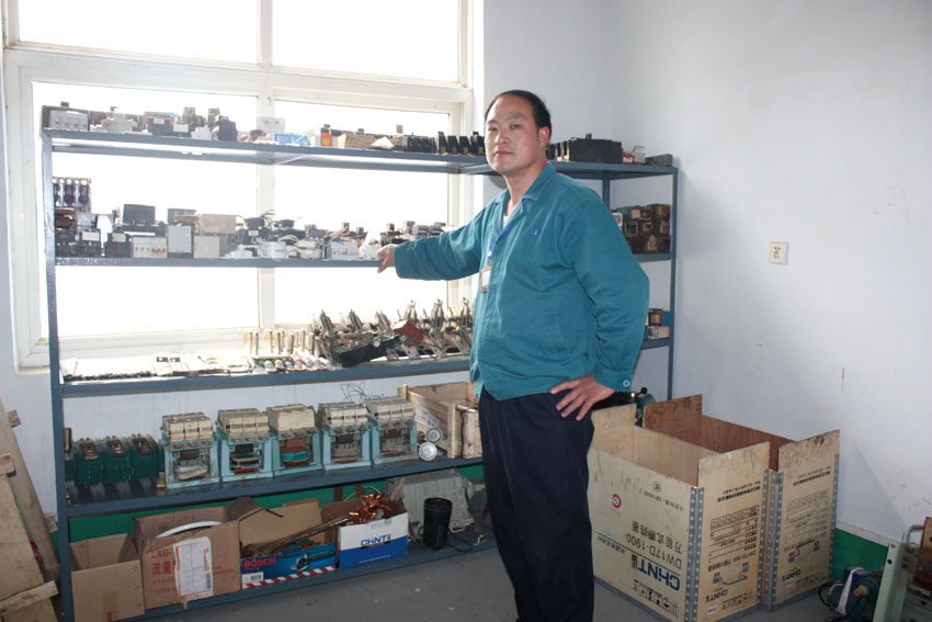 在動(dòng)力車間的管理下,原先的廢料場(chǎng)變成了具有濱農(nóng)特色的廢舊物資超市,為各車間提供了便利條件,殊不知,在動(dòng)力車間內(nèi)部還有一個(gè)小型的廢舊物資超市呢。在這個(gè)小超市里,整齊擺放著一些設(shè)備的零部件或配件,如電器類交流接觸器,機(jī)械設(shè)備上的軸承、設(shè)備上拆卸下來(lái)的有色金屬條,一截一截的電纜電線,電焊條頭、在一個(gè)小盒子里甚至盛滿了絕緣膠帶的內(nèi)芯……