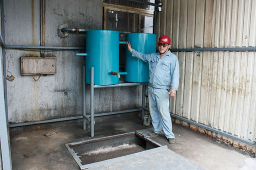 關(guān)鍵點技改,局部治理。現(xiàn)場難抓往往就是因為幾個點沒有做好,有的是來自設(shè)備的影響,有的是員工的個人操作習(xí)慣。合成一車間針對生產(chǎn)中灑料、漏料、氣味大的幾個點進(jìn)行了技改,使現(xiàn)場管理整體邁進(jìn)一個層次。眾所周知,機械真空泵房一直是困擾每個車間的難題,原因就是給真空泵加油時不可避免的出現(xiàn)灑落現(xiàn)象,灑落的機油非常難清理。合成一在真空泵房一端連接了一個加油箱,此油箱可直接通過閥門連接到每個泵的油杯。這樣加油時避免了機油灑落現(xiàn)象,也使真空泵房的現(xiàn)場環(huán)境得到了完全解決。