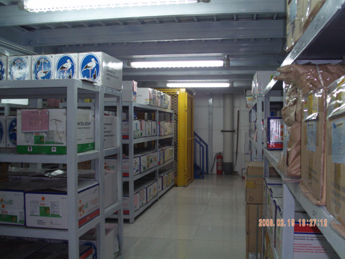 標簽恒溫室分兩層,總實用面積140㎡ ,主體為鋼架結(jié)構(gòu),墻體采用加厚保溫復合板全密式封閉,內(nèi)設紅外線電子控制上下運輸機、5匹全自動恒溫空調(diào)壓縮機、加濕器、除濕器等先進設備,為節(jié)省能源,提高室內(nèi)采光度,墻體設有32個雙玻中空采光孔。室內(nèi)設備正常運行后,可在16℃~30℃之間選擇最佳控溫效果。恒溫室投入使用后,不但有效解決室溫造成的包裝損失,還提高了倉庫容量,為公司包裝物的安全儲存提供了有力保障。